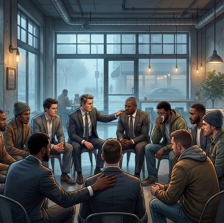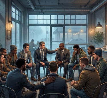 Men 18+ who are ready to drop the mask. You don’t need to have everything figured out—you just need a genuine desire to grow. This space is for working men, students, fathers, sons, creatives, builders—anyone willing to look in the mirror and not look away.