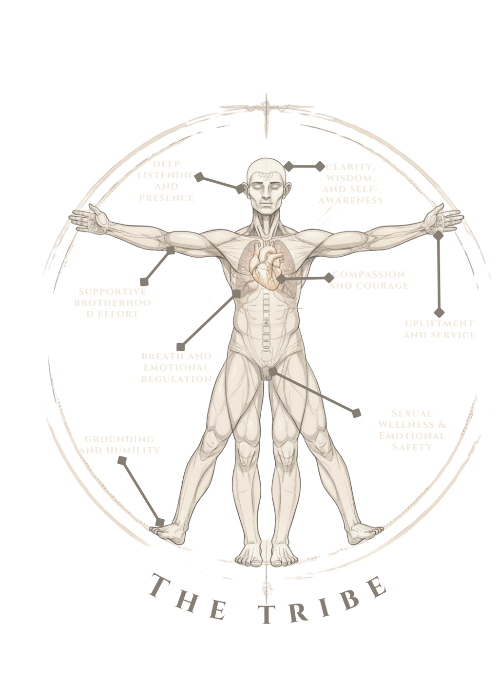 These pillars are mapped to the body of a man because we believe values must be lived, not just spoken. Each one asks something of us in how we think, feel, speak, and act.